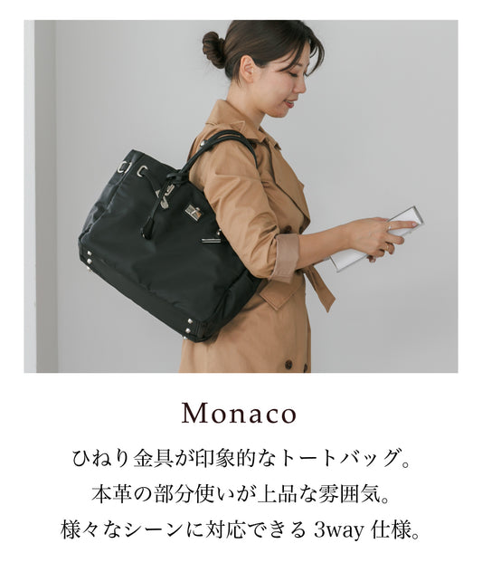 【La Closet】3way ビジネストートバッグ リュックサック キャリーオン 本革ハンドル 軽量 はっ水 ナイロントート 大容量 ビッグトート 通勤バッグ 通勤トート 本革 付属 大人女子 レディース 30代 40代 イマイバッグ Monaco 99-3012