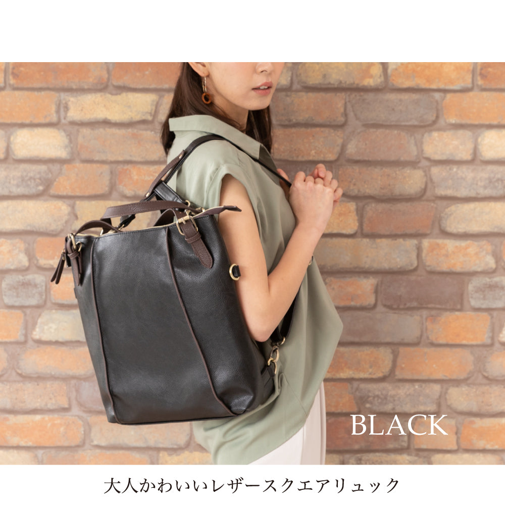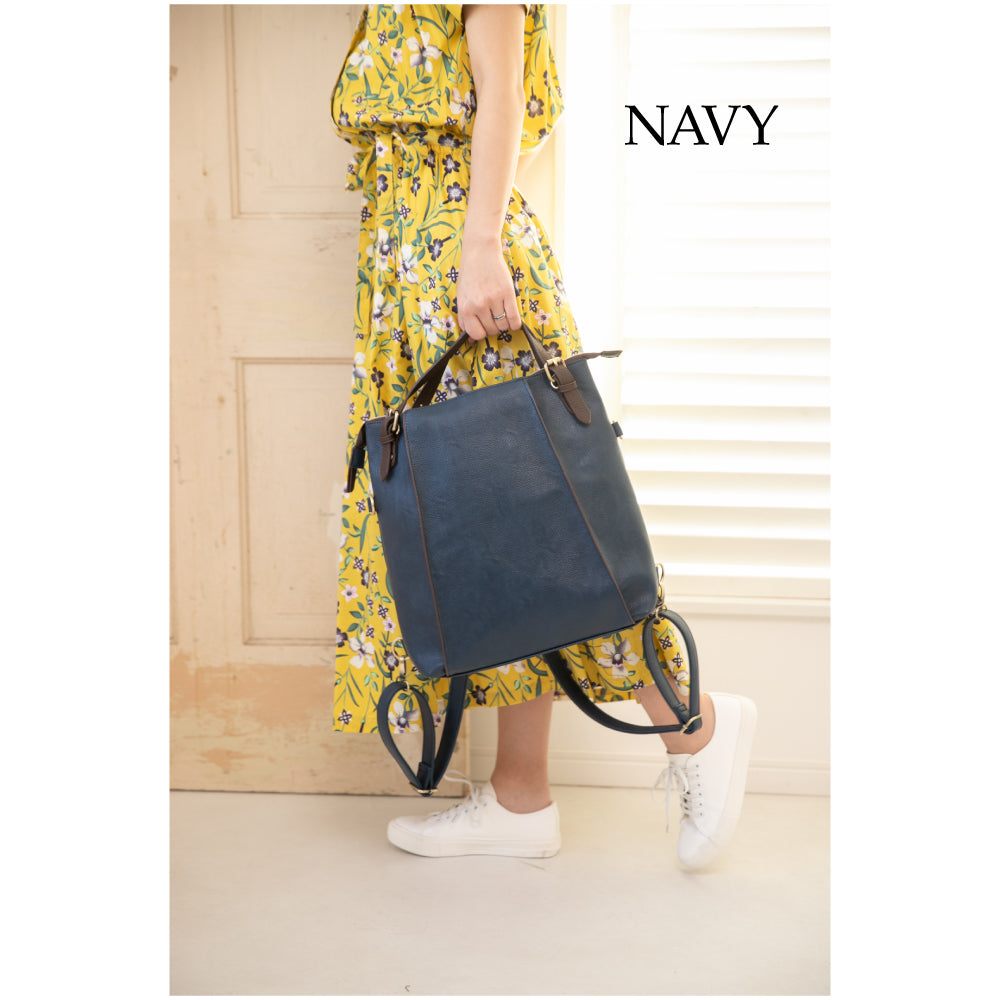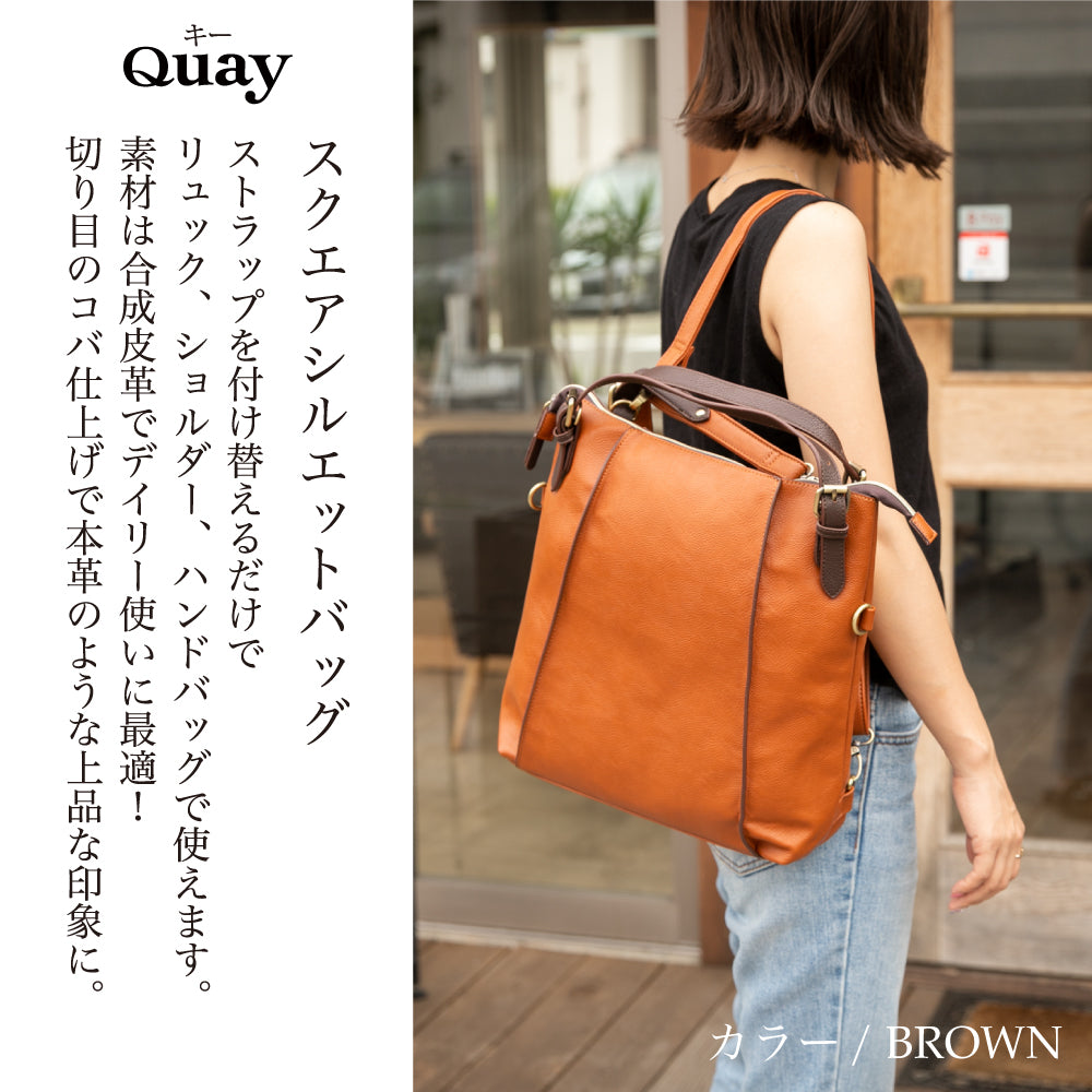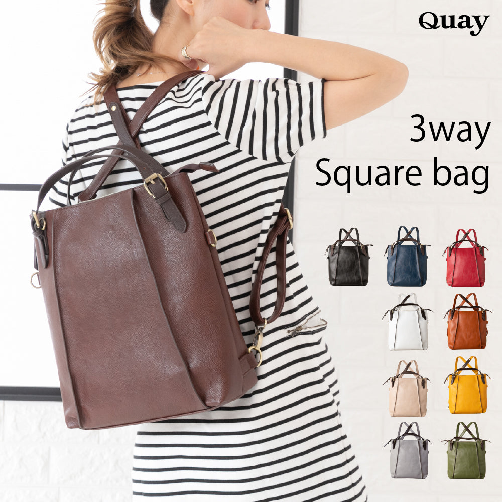 - 流行のスクエアシルエットバッグはストラップを使ってリュック、ショルダー、ハンドバッグの3WAYタイプに変身!