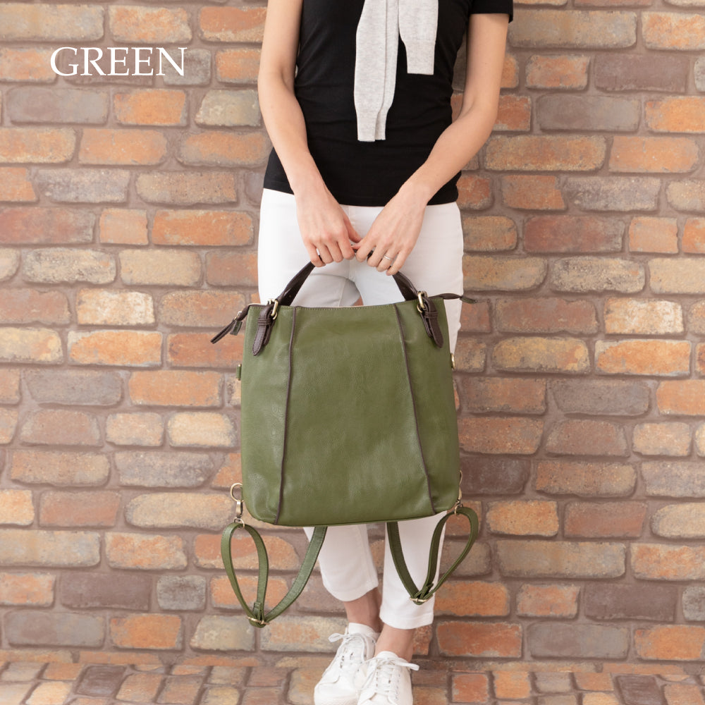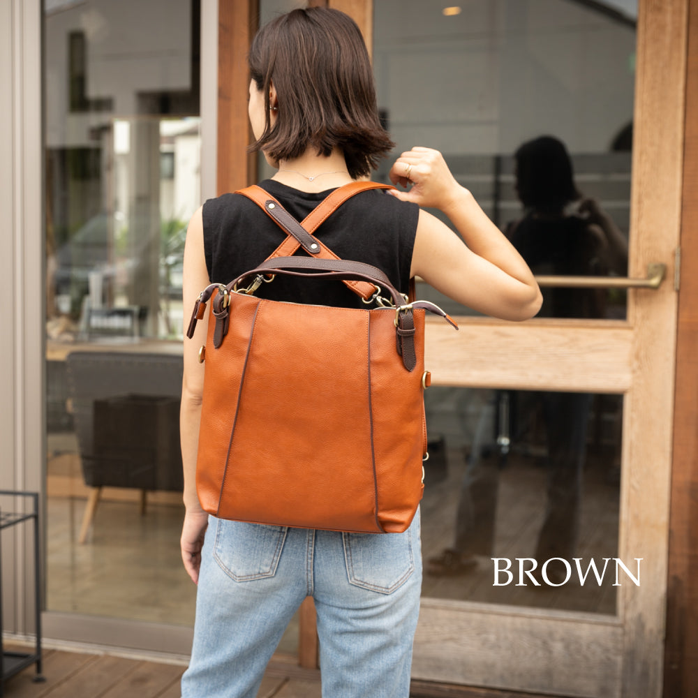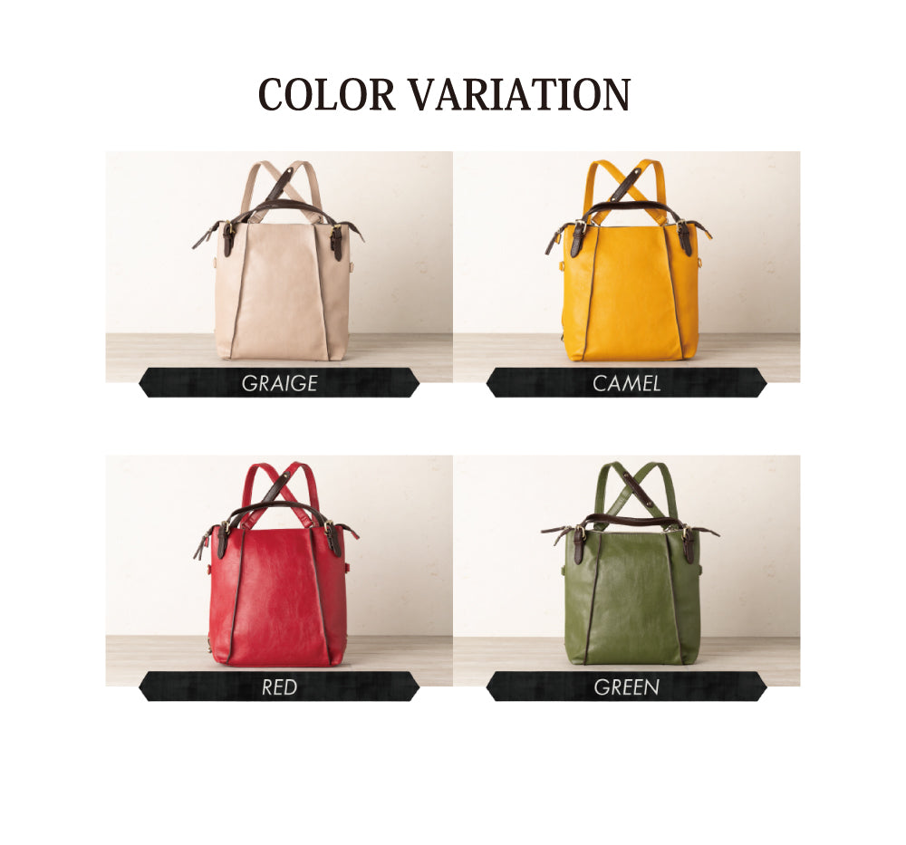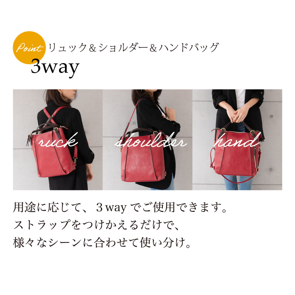 - 流行のスクエアシルエットバッグはストラップを使ってリュック、ショルダー、ハンドバッグの3WAYタイプに変身!