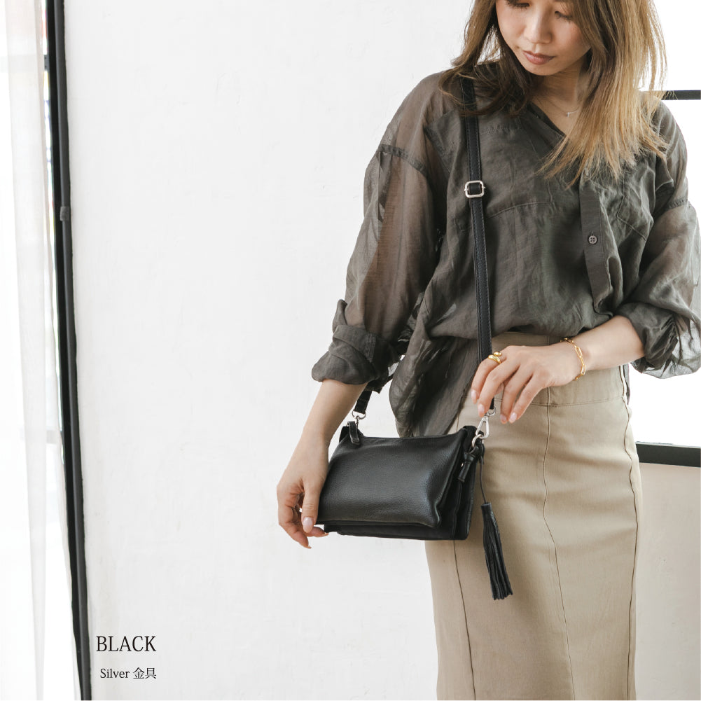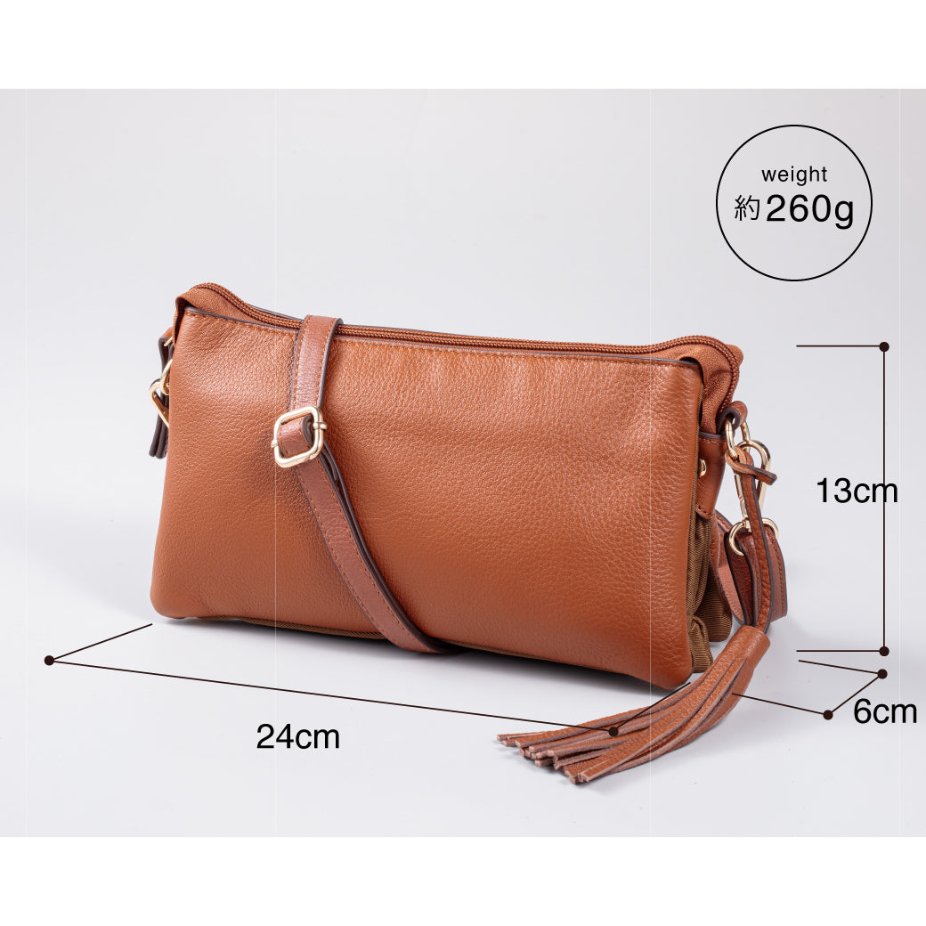 - 【軽量設計】 ストラップなしで約260gと軽量。タッセルチャームがアクセント。母子手帳やパスポートも収納可能なサイズです。